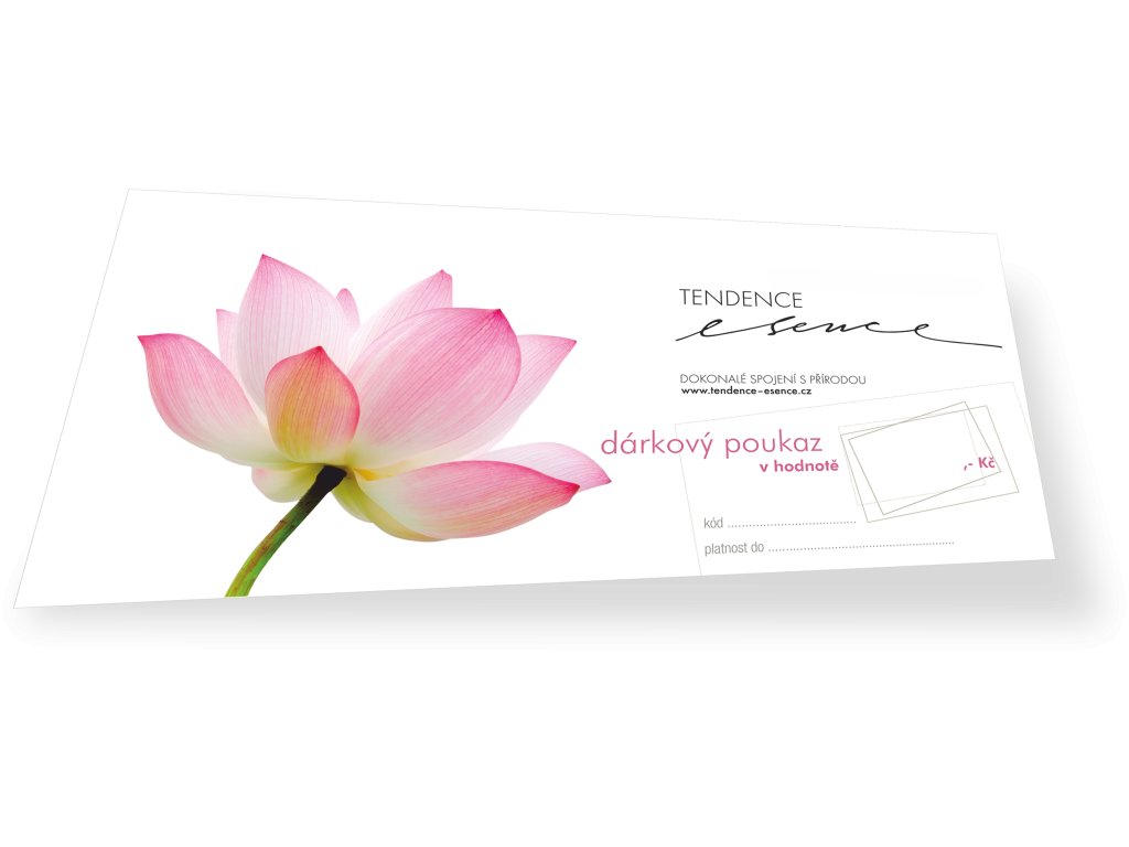 Dárkové poukazy e-shopu Tendence-esence.cz jsou tištěné na matném křídovém papíře s gramáží 250 g/m2. Zadní strana poukazu je čistá, jako stvořená pro napsání pěkného věnování. Poukaz je 21 cm široký a 10 cm vysoký.