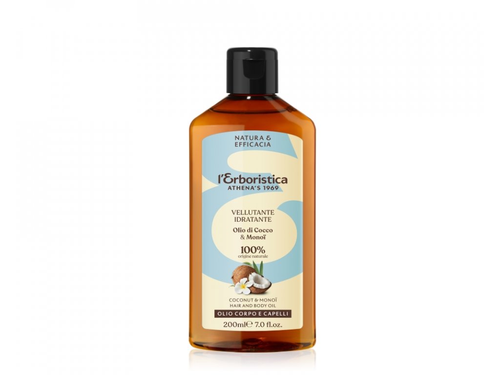 Olej na tělo a vlasy Erboristica COCCO je strategická kombinace kokosového oleje a výtažku z tahitské gardénie zvaného Monoi. Intenzivně pečuje o pokožku, zvyšuje její pružnost a pevnost, pomáhá udržovat přirozený hydrolipidový film.