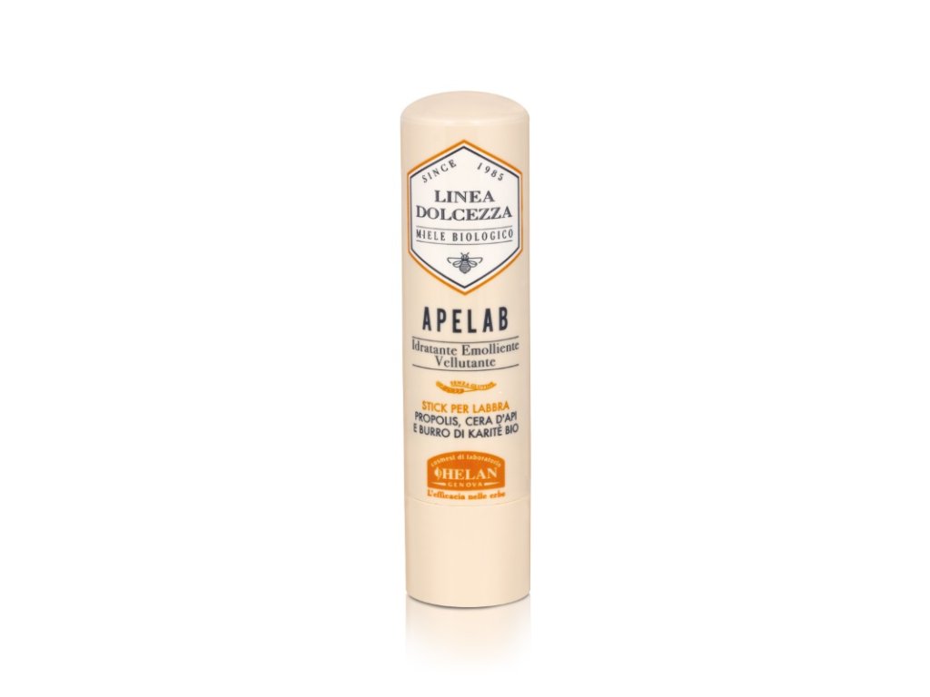 Jemná vyživující tyčinka Dolcezza Apelab obohacená včelím voskem a bambuckým máslem v bio kvalitě obnovuje hydrataci a pružnost rtů, tlumí účinky slunce, chladu i větru na moři i horách a díky propolisu zklidňuje nepříjemné pálení způsobené popraskáním či zarudnutím.