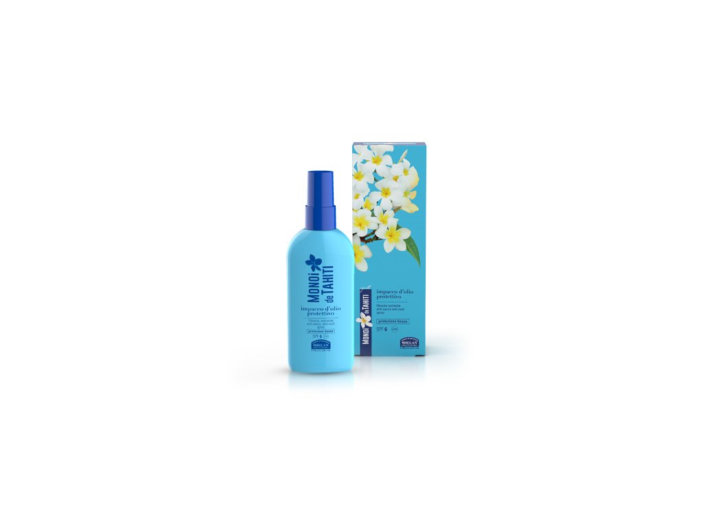 Ochranný vlasový olej na opalování SPF6 obalí vlasy nemastným filmem a zabrání jejich vysušení, poškození a ochrání lesk barvených vlasů. Olejový nemastný povlak odráží sluneční paprsky a tím chrání vlasy před poškozením sluncem. Při každém použití kompenzuje škody způsobené sluncem a solí a navrátí vlasům světlo, jemnost a vitalitu.