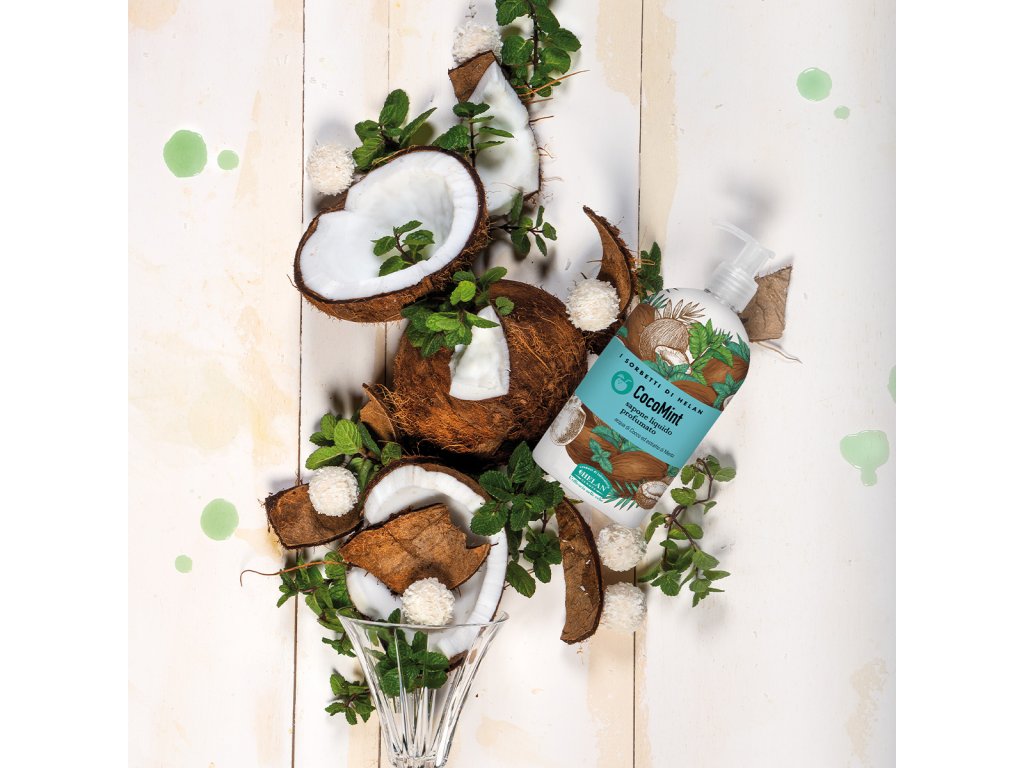 Vůně CocoMint je svěží a oživující - dokonalá pro osvěžení během horkých letních měsíců, nebo pro povzbuzení v chladných zimních ranních hodinách. Tekuté mýdlo je navíc obohacené o kokosovou vodu, která je bohatá na minerály a má hydratační a regenerační účinky. Mátový extrakt dodává mýdlu jeho osvěžující vlastnosti.