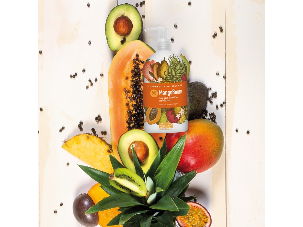 Nic není lepšího než pocit čistoty spolu s osvěžujícím zážitkem z exotických vůní. A právě toto všechno nabízí tekuté mýdlo Helan Sorbetti MangoBoom. Jeho lehké a jemné složení s mycími složkami rostlinného původu je bez SLS a SLES a vytváří jemnou pěnu, která respektuje jemnou fyziologickou rovnováhu i nejcitlivější pokožky.