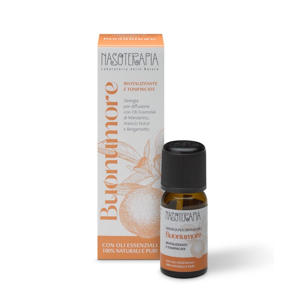 Probuďte radost a smích se směsí esenciálních olejů Nasoterapia Buonumore, která dokáže proměnit každodenní okamžiky ve chvíle, které se zapíšou do paměti. Tato směs čistých, 100% přírodních esenciálních olejů z mandarinky, sladkého pomeranče a cedru vytváří atmosféru plnou pohody, oddaluje stres a podrážděnost a podporuje radost ze společně stráveného času s vašimi blízkými.