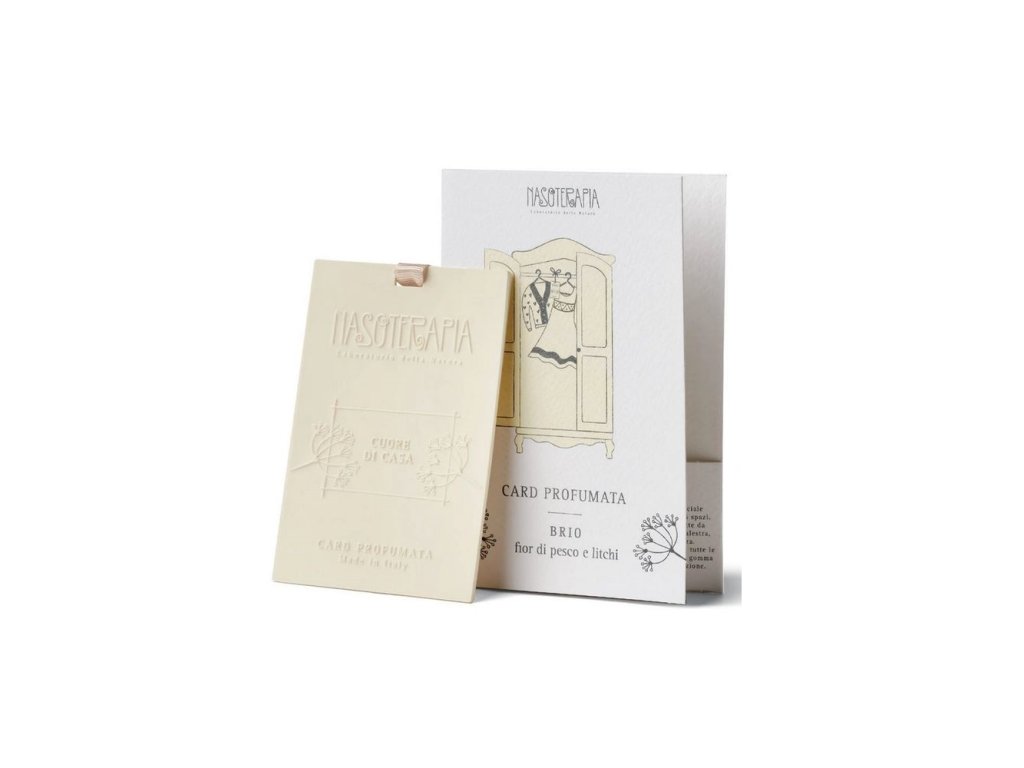 Parfémovaná kartička do skříně BRIO (optimismus) vaše prádlo naplní živostí a svěžestí vůně broskvového květu a liči s tóny fialky a bergamotu.