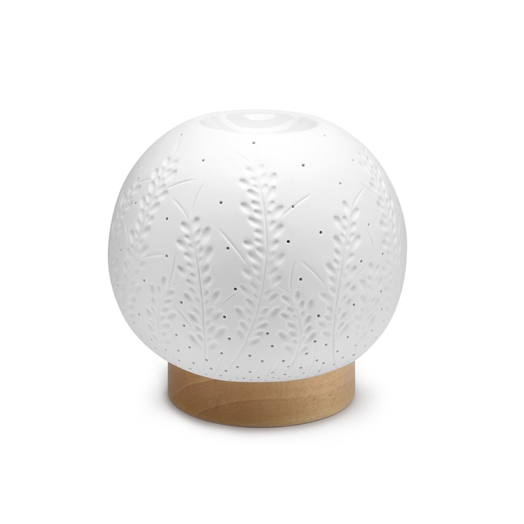 Elektrický difuzér Auris zaujme na první pohled svým jemným zdobením, které připomíná obilné pole zalité světlem. Reliéf klasů na prosvětleném podkladu symbolizuje bohatství přírody a dodává difuzéru elegantní vzhled, díky němuž se hodí do každého interiéru – od moderního po klasický.