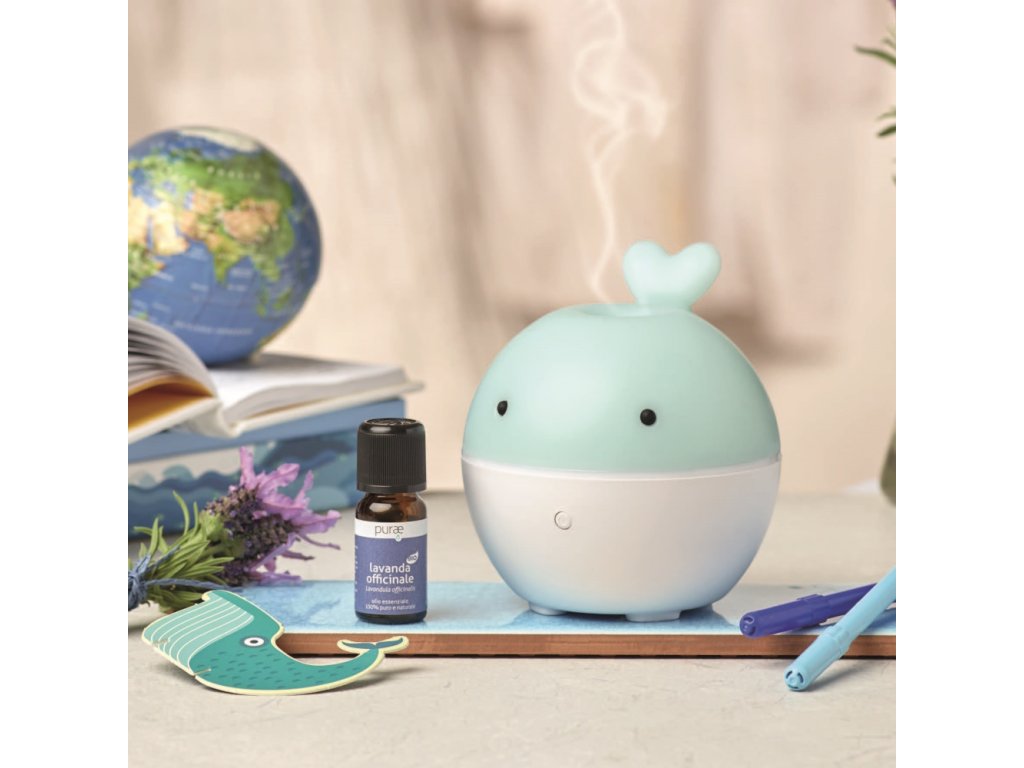Purae MELISSA ultrazvukový aroma difuzér ve tvaru rybky ladí s hravostí dětských pokojů. Má tichý provoz a funkci automatického vypnutí při odpaření vody.