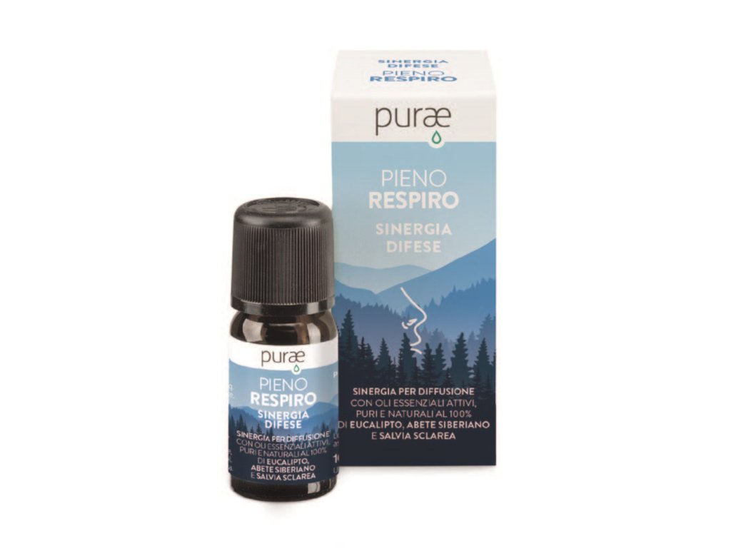Purae Pieno Respiro Difese obsahuje směs čistých esenciálních olejů z eukalyptu, levandule, šalvěje a sibiřské jedle, kterou oceníte v uzavřených a sdílených prostorách, doma, v kanceláři či třeba v autě. Biologicky aktivní silice pročistí vzduch a vy budete mít chuť zase zhluboka dýchat.
